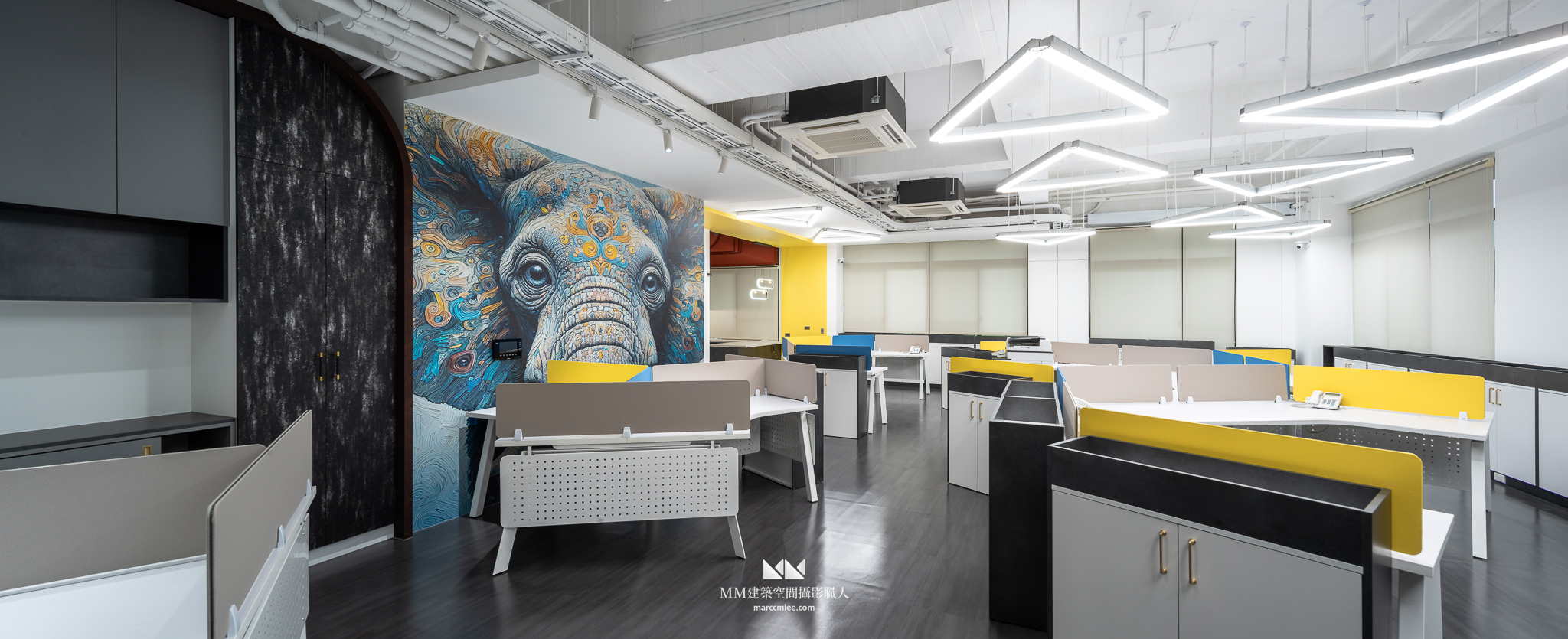 在這個辦公空間裡,光線成為串聯設計與使用的主角。首先,早晨的自然光沿著大面玻璃滑入室內,落在橡木紋理的桌面與地坪上,為灰階牆面注入剛剛好的溫度。因此,整體空間在理性與溫潤之間取得平衡。我以廣角構圖延伸動線與層次,同時控制反差,保留金屬、木質與布料材質的細緻質感,呈現通透而有節奏的空間表情。