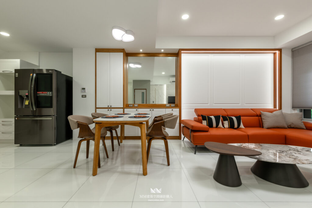 本案為台南一棟老舊住宅大樓的改造工程,空間位於兩棟建築之間的橋樓四、五層,原始條件相對複雜。因此,設計團隊以「舊物新生」為核心概念,重新整理動線與空間機能,回應採光不足與格局零碎的問題。同時,大量運用實木與天然材質,讓翻新後的住宅仍保有情感溫度與生活感。